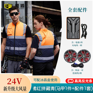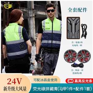 クロスボーダー夏用空調服冷却反射ストリップベストファン付き服ファンスーツ