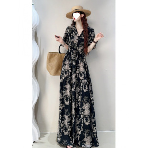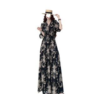 2025 新しい足首丈ドレス気質巾着花柄ウエスト痩身大きいサイズ mm ロングスカート