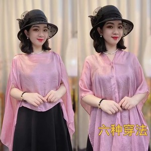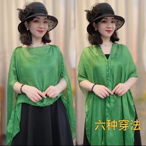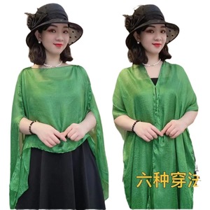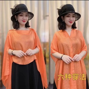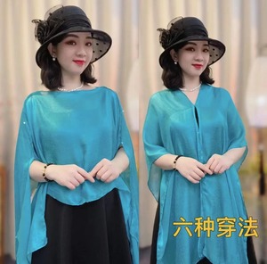 2025 夏の新しいスタイルのリゾートスタイルファッショナブルで多用途な日焼け止めプルオーバーシルクスカーフ無地薄いショール女性メーカー