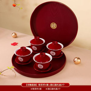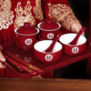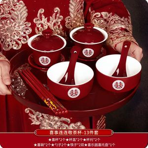 改名茶カップ、結婚式用ティーセット、家庭用結婚式用ボウル4個、ティーボウル、ティーポット、新婚夫婦用