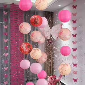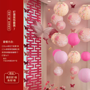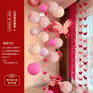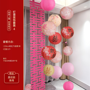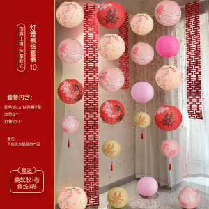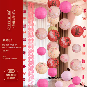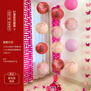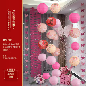結婚式の部屋のレイアウトセット結婚式のカーテンプルランタン滝男性と女性の結婚式の寝室のドレッシングガウン背景壁の装飾