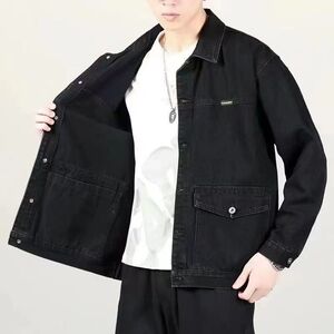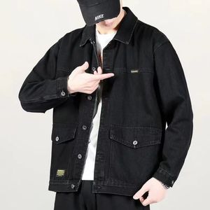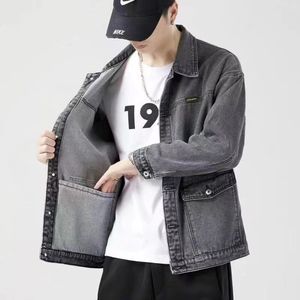 秋冬の高級デニムジャケットメンズルーズマルチポケットトレンディ多用途ハンサムトップ大きいサイズラペルカジュアルジャケット