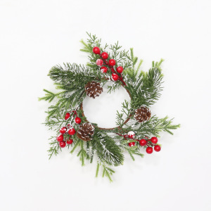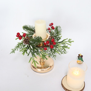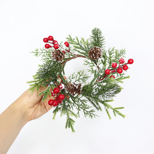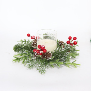 新しいアマゾンクロスボーダークリスマスキャンドルリングフロストホワイト松葉モミヒイラギーウィンターグリーンフルーツ松ぼっくりキャンドルホルダーリングドロップシッピング