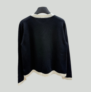 新発売 C+気質セレブ風シングルブレストコントラストカラーステッチVネック長袖万能ニットカーディガントップス女性用~