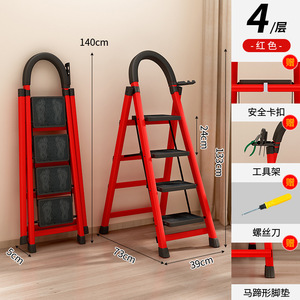 家庭用はしご、厚みのある折りたたみはしご、新築祝い、赤い多機能小型ポータブル階段卸売