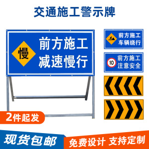前方工事中、減速してゆっくり走行してください