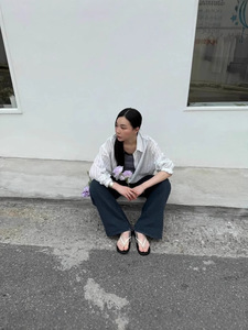 2025年夏新作 韓国東大門m*ia ゆったり無地ハイウエストストレートスリムジーンズパンツ