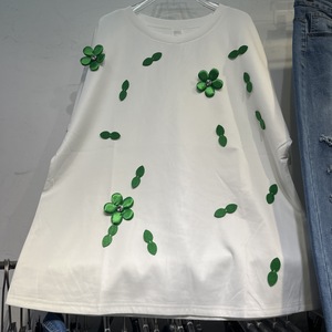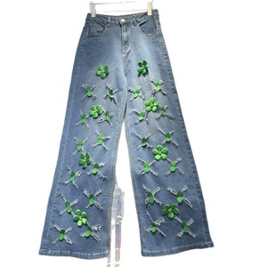 小さくて爽やかな韓国風万能Tシャツレディース半袖レディースリッピング立体花飾りストレートスリムジーンズ2枚
