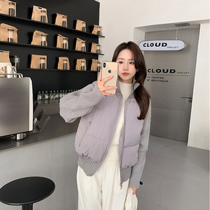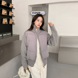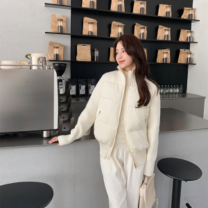 クリームパフニットスプライシングセーターダウンコットンジャケット女性のための 2025 秋と冬の新しい韓国のハイエンド暖かいジャケット