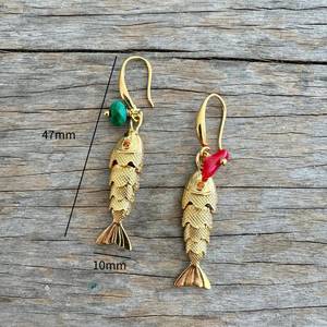 ヨーロッパとアメリカのクロスボーダーファッション新製品レトロゴールデン深海レッドアイ小魚イヤリングイヤリングイヤリング金メッキ色保持