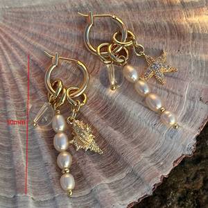 ホラ貝とヒトデのパールイヤリング