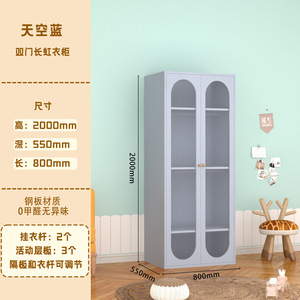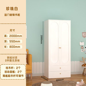 轻法式钢制奶油风衣柜家用卧室环保衣橱多层分区收纳防潮防锈衣柜