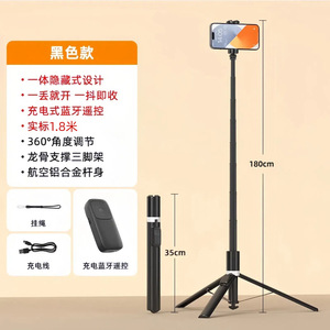 ブラック-1.8m 9ボタンズームリモコンバージョン[ワンクリック/マグネット収納/合金三脚]
