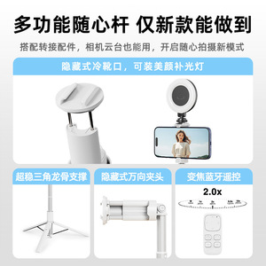ホワイト-1.8m 9ボタンズームリモコンバージョン[ワンクリック/マグネット収納/合金三脚]