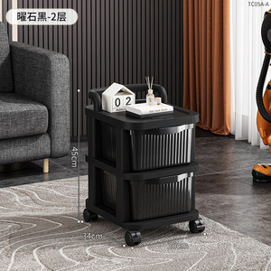 TC05A-曜石黑手推车二层-黑色抽屉