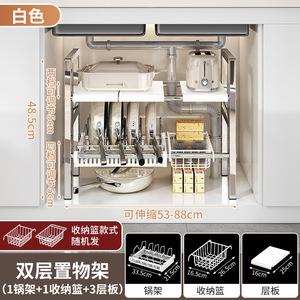 キッチン収納ラック多機能ステンレス鋼白カウンタートップシンク下多層調節可能な収納ラック