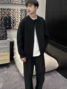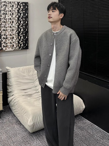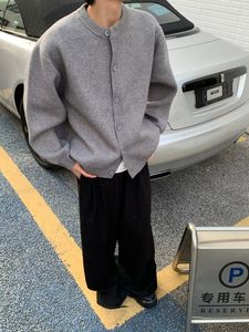 卸売新しいソリッドカラーラウンドネックジャケットメンズレトロクリーンフィットルーズトレンディカジュアルリラックスニットカーディガン