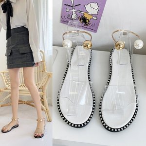 2025年夏 欧米風カジュアル フラット パンプス パール付き ビーチサンダル 大きいサイズ レディース フィッシュマウスサンダル