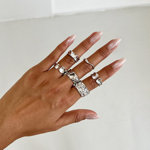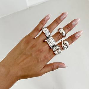 ヨーロッパとアメリカのクロスボーダーヒップホップインスタイルメタルオーバルチェーンネックレスデザイン溶岩プリーツダイヤモンドリングセット