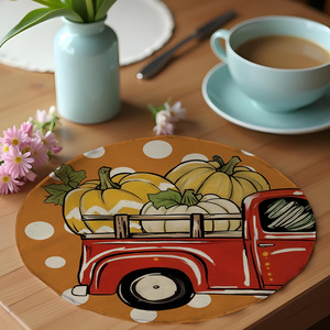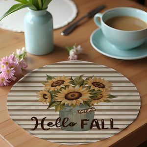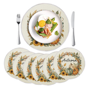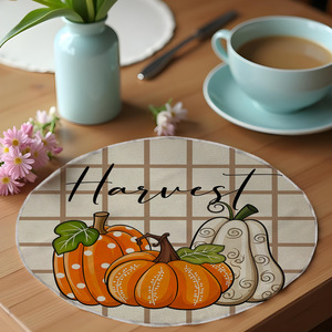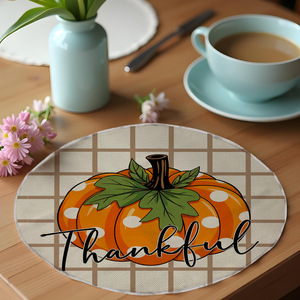Amazon 新製品秋の感謝祭ラウンドプレースマットリネン汚れにくい食器断熱マットシンプルな装飾西洋プレースマット