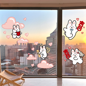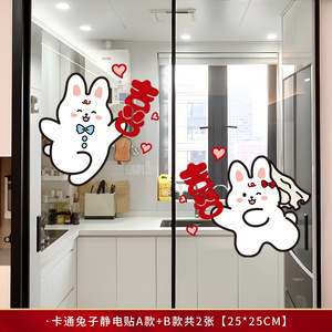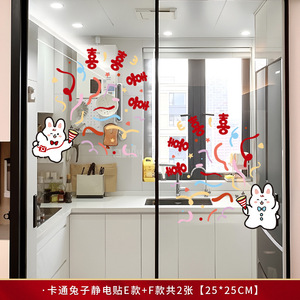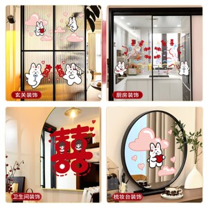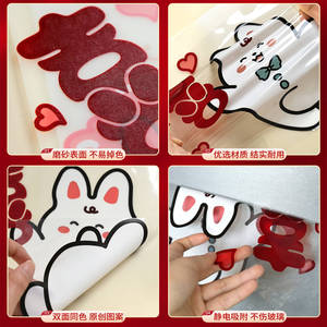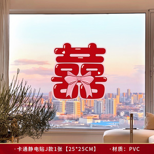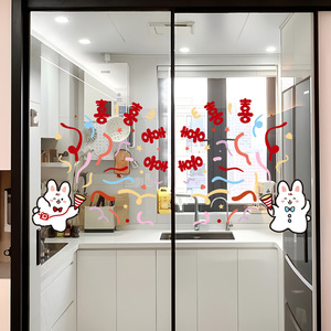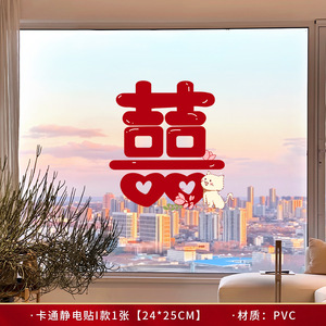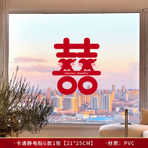 结婚专用线条小狗喜字静电贴结婚新房窗户窗花门贴纸婚房布置装饰