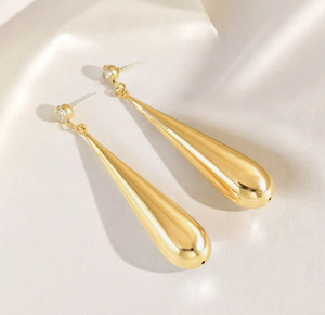 ヨーロッパとアメリカのシンプルなウォータードロップロングイヤリング、ハイエンドメタルスタイルイヤリング、パーソナライズされたクールスタイルイヤリング、イヤリング