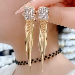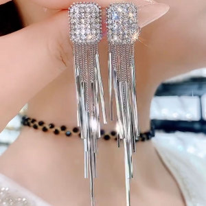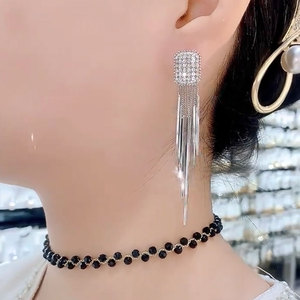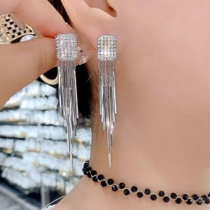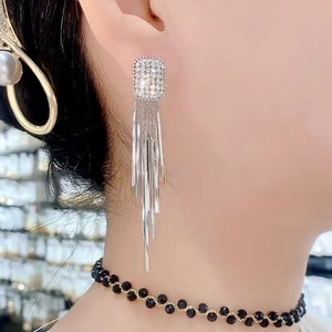 ライトラグジュアリーでハイエンドのシルバーロングタッセルイヤリング、人気のニッチデザインイヤリング、女性用のエレガントな女神スタイルのイヤリング