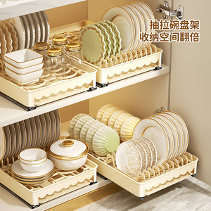 キャビネットバスケットキッチンシンク下引き出し式格納式排水ラックパンチフリー引き出し式食器収納ラック