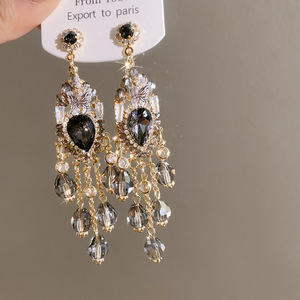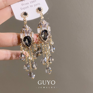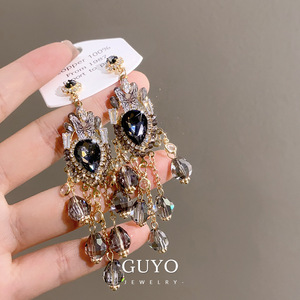 银针民族风镶钻水晶爱心耳钉复古小众耳环轻奢气质耳饰小众高级感