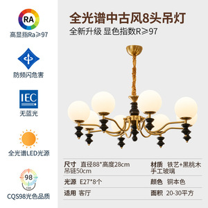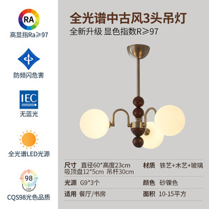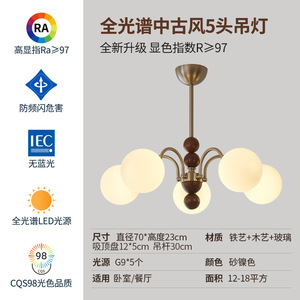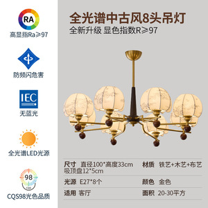 フレンチミッドセンチュリーリビングルームシャンデリア、新しい中国風のメインランプ、宋代の美学、ハイエンドのホールレストランランプ、無垢材のランプ