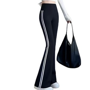 Feige 3 ストライプバービーフレアパンツレディースシャークパンツストレッチブラックスリムスポーツパンツハイウエストヒップリフティングタイツ