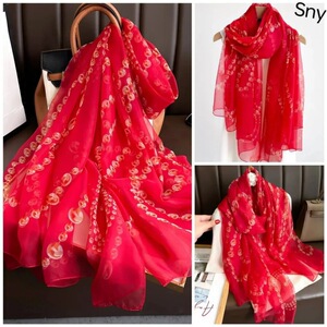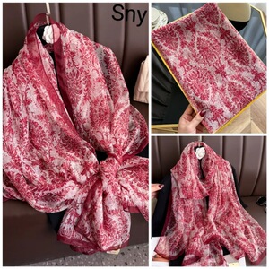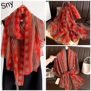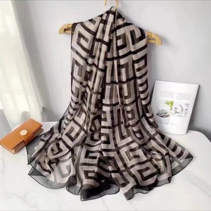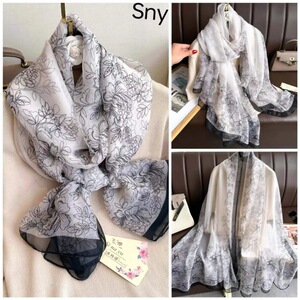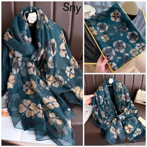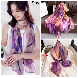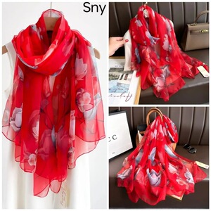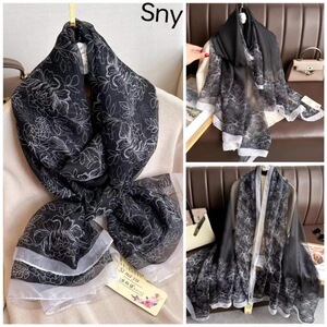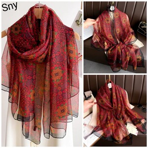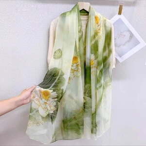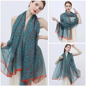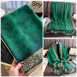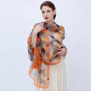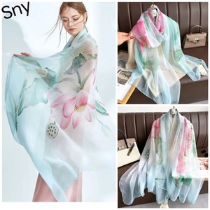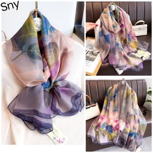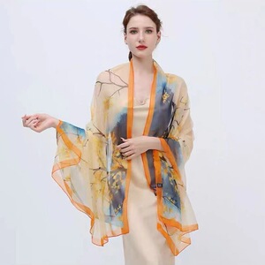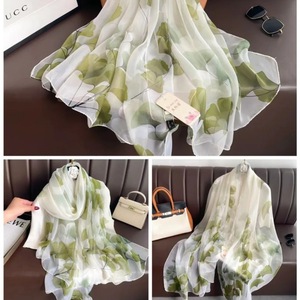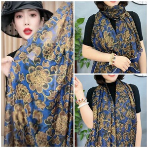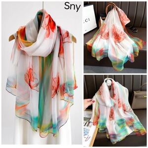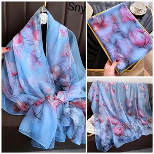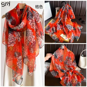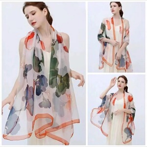 春夏新款优柔纱防晒披肩夏季薄款仿真丝长款丝巾时尚印花花朵围巾