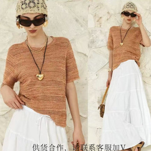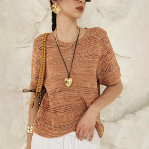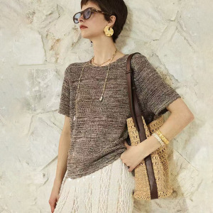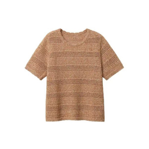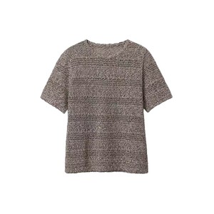ナチュラルオールドマネー感綿麻中空ニット リネン55% 綿45% 通気性のある花柄糸ニット半袖T