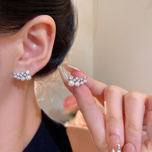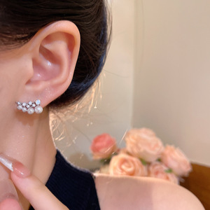 ライトラグジュアリーニッチユニークなデザインの女性用羽根真珠イヤリング、フラッシュマイクロジルコンイヤリング、シンプルなワンワードイヤリング