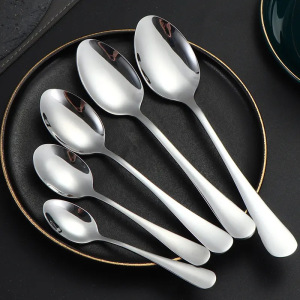 1010不锈钢勺子家用吃饭餐勺长柄调羹甜品尖勺搅拌咖啡勺可印LOGO