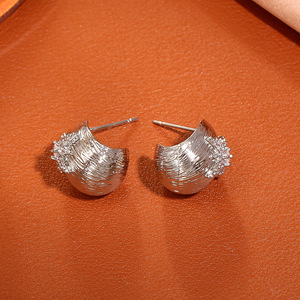 银色拉丝锆石耳钉