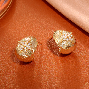 金色拉丝锆石耳钉