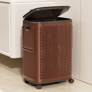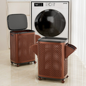 籐の汚れた衣類バスケット家庭用収納バスケット蓋付き高品質のバスルームの汚れた衣類バスケット大容量の車輪付き衣類収納バスケット