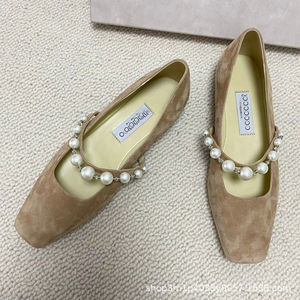 チャンネルグッズ!購入代理店にご入荷ください!ヨーロッパとアメリカのJC本革レディースシューズスクエアトゥ浅口パールフラットメリージェーンシューズ