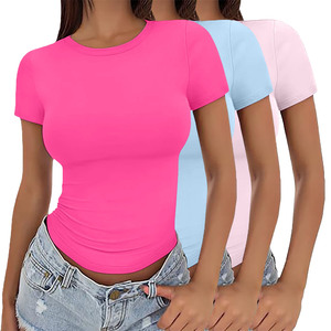 欧米の夏の女性用プルオーバーTシャツ、ホットガールアウターウェア、スリムフィットトップス、ファッショナブルなラウンドネック、高級ミルクシルク女性用3枚