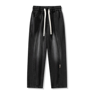 メーカー供給デニムメンズルーズストレートワイドレッグロングパンツジーンズアメリカンストリートレトロ伸縮性ウエスト