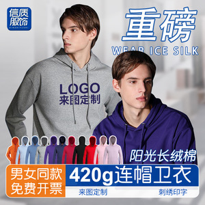 420g秋冬加绒连帽卫衣绣字团体服工作服广告不倒绒帽衫定制印logo