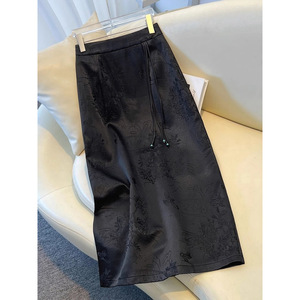 新しい中国風のスカート女性のための春と秋 2025 新しいストレートヒップスカートヘビーエンゲージ刺繍サテン A ラインスカート