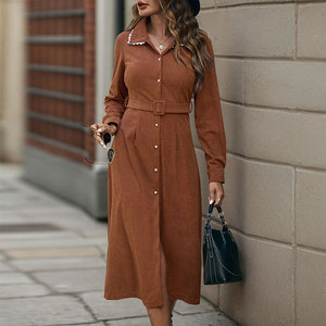アマゾンの新作クロスボーダー万能カジュアルエレガントレトロ風レース襟シャツ風コーデュロイワンピース