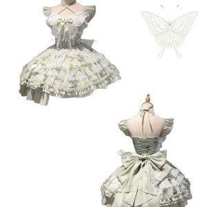 花の季節の約束白と緑の蝶サマーフェアリードレス小さな新鮮なプリンセスガール誕生日ショートスカートロリータ