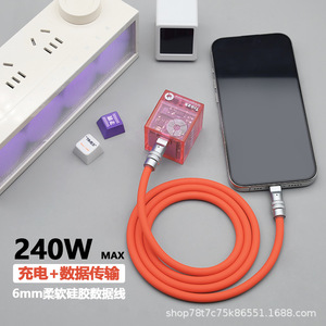 240 ワットヨーロッパ液体シリコーンデータケーブルカスタマイズされたカラーマッチング Apple および Android ユニバーサルソース工場に適しています