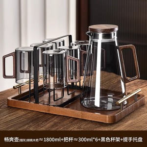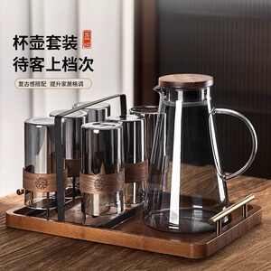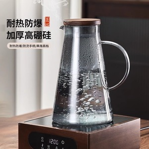 見栄えの良い家庭用コールドケトル冷水カップティーカップセット耐熱防爆高ホウケイ酸ガラス木製蓋大容量