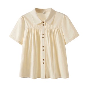 大きいサイズの女性のフレンチ半袖シャツ夏 2025 ミリメートル新しいスリムで少し太ったカバーアップトップショートストレートヘア