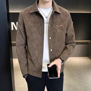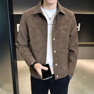 春と秋のジャケットメンズ 2025 新しいハンサムなトレンディなブランドハイエンドラペルスエード春服メンズジャケット