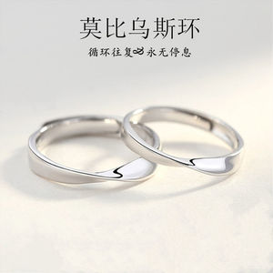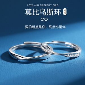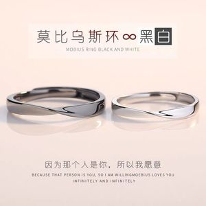 メビウスのカップルリング男性と女性のオープンリング模造 S925 スターリングシルバー非退色ニッチライト高級リング卸売